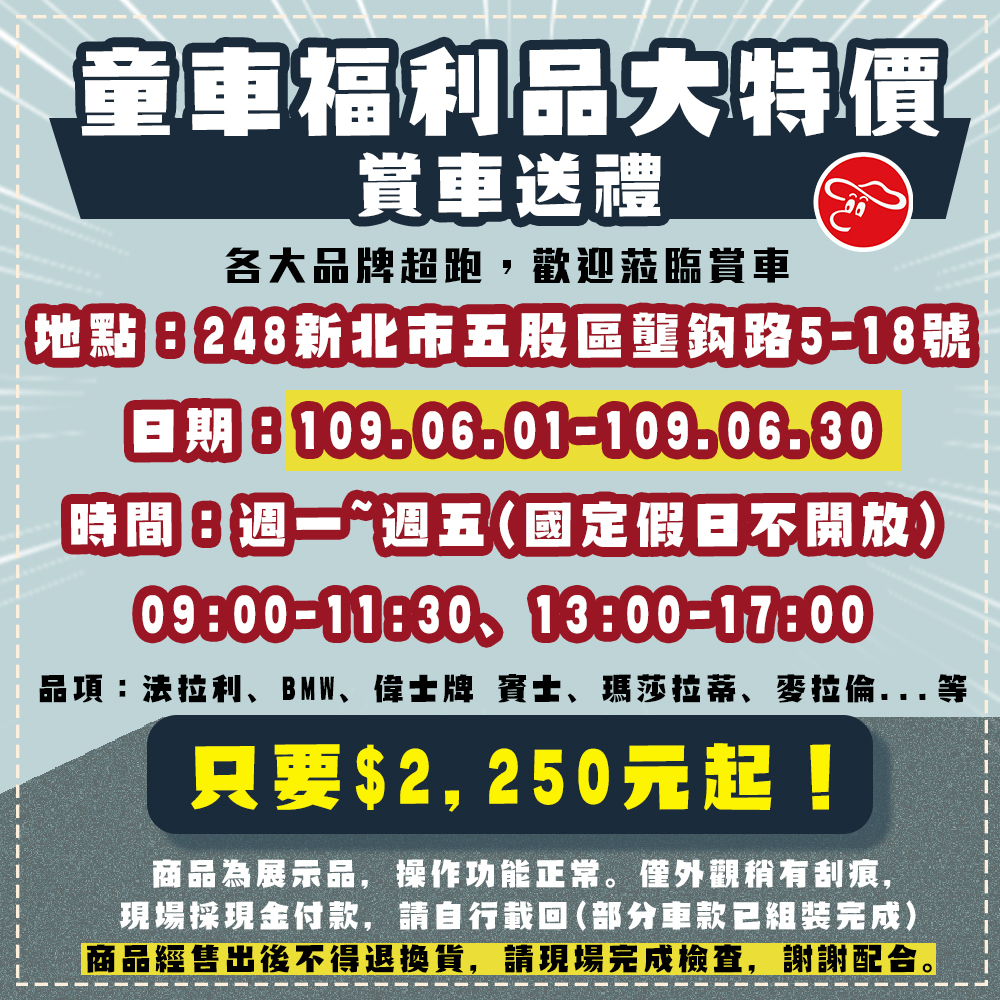 賞車送好禮【童車福利品 大特價】
