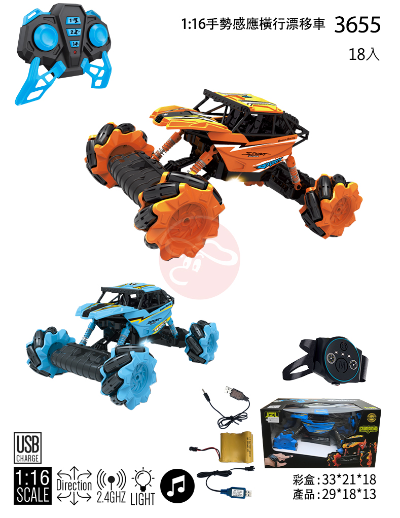 【型號3655】1:16手勢感應橫行漂移車