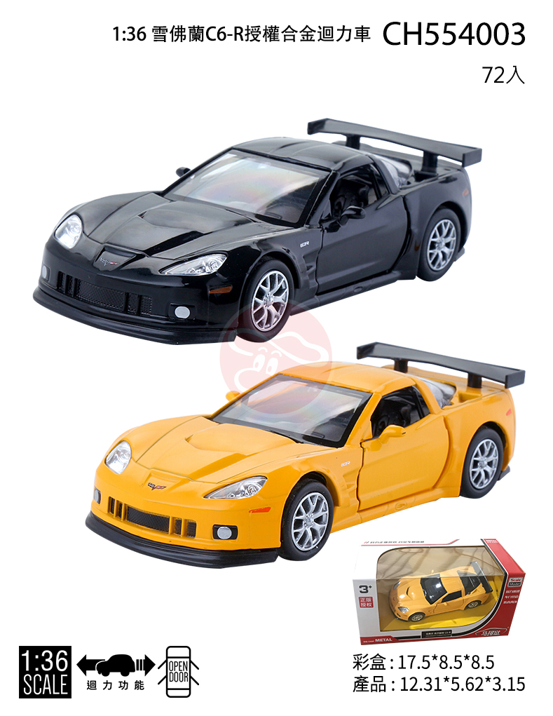 【型號CH554003】1:36 雪佛蘭C6-R授權合金迴力車