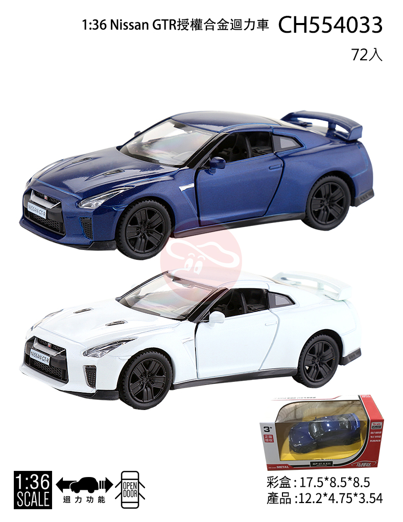 【型號CH554033】1:36 Nissan GTR授權合金迴力車