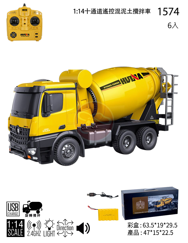 【型號1574】1:14十通道遙控混泥土攪拌車