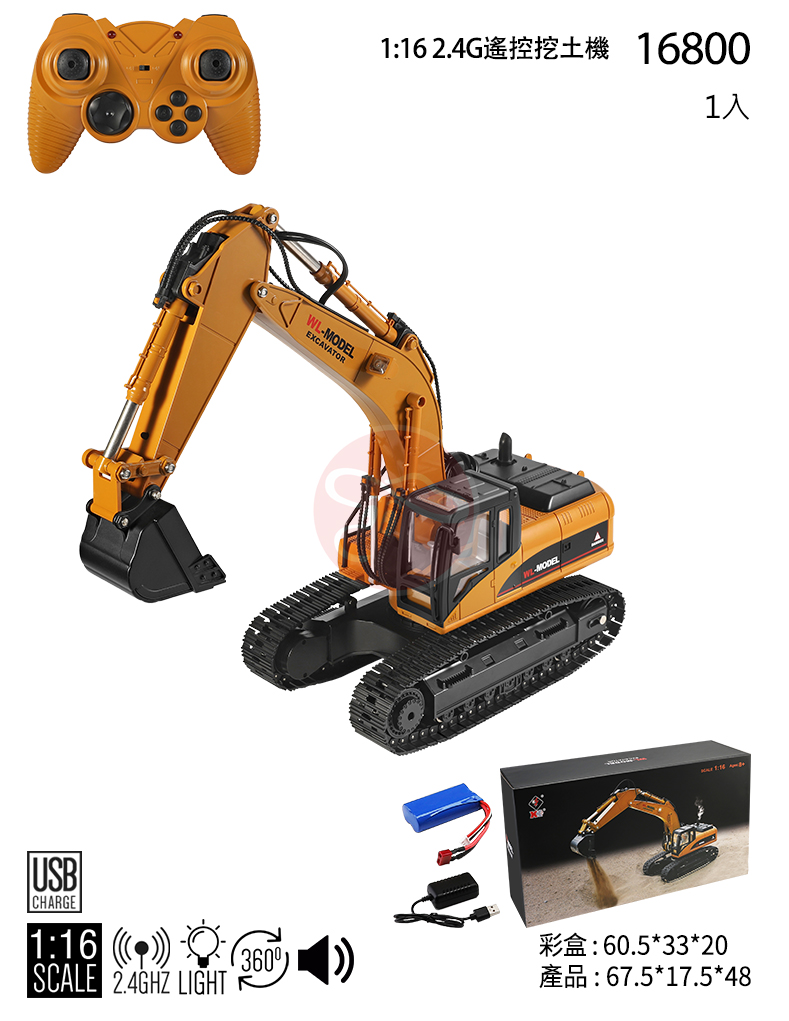 【型號16800】1:16 2.4G遙控挖土機