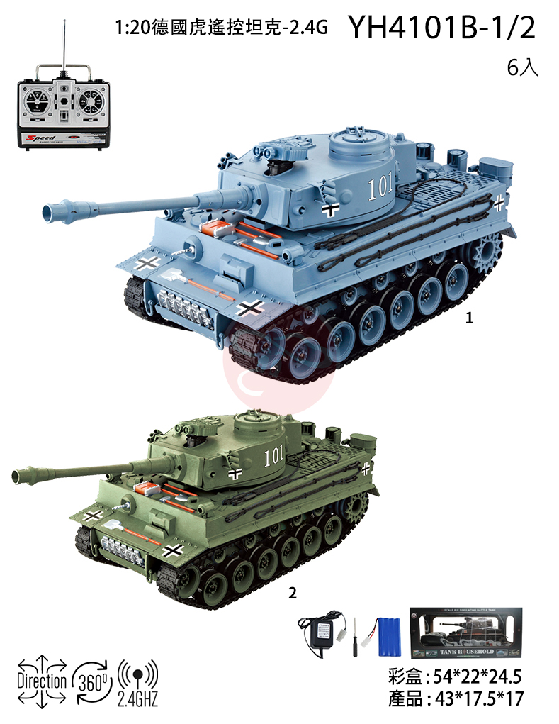 【型號YH4101B-1/-2】1:20德國虎遙控坦克-2.4G