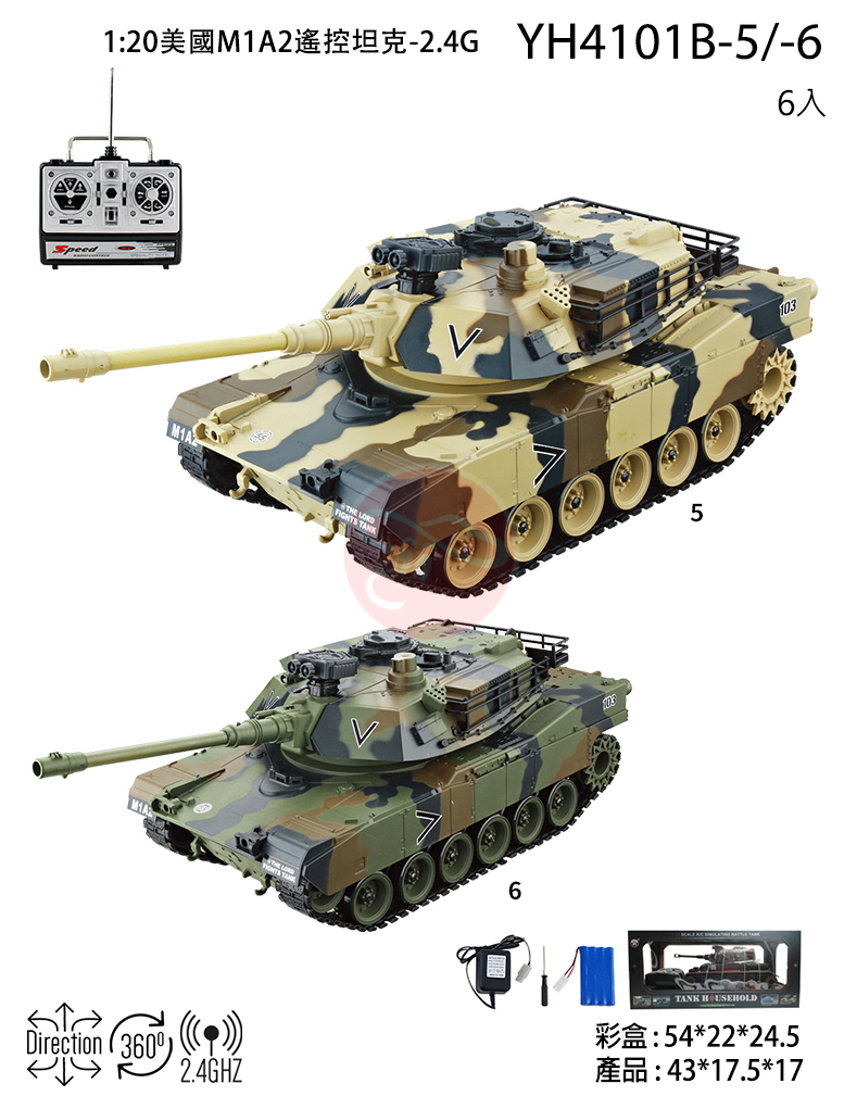 【型號YH4101B-5/-6】1:20美國M1A2遙控坦克-2.4G