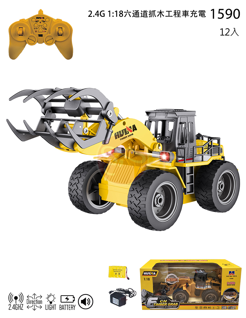 【型號1590】1:18 六通道抓木工程車充電