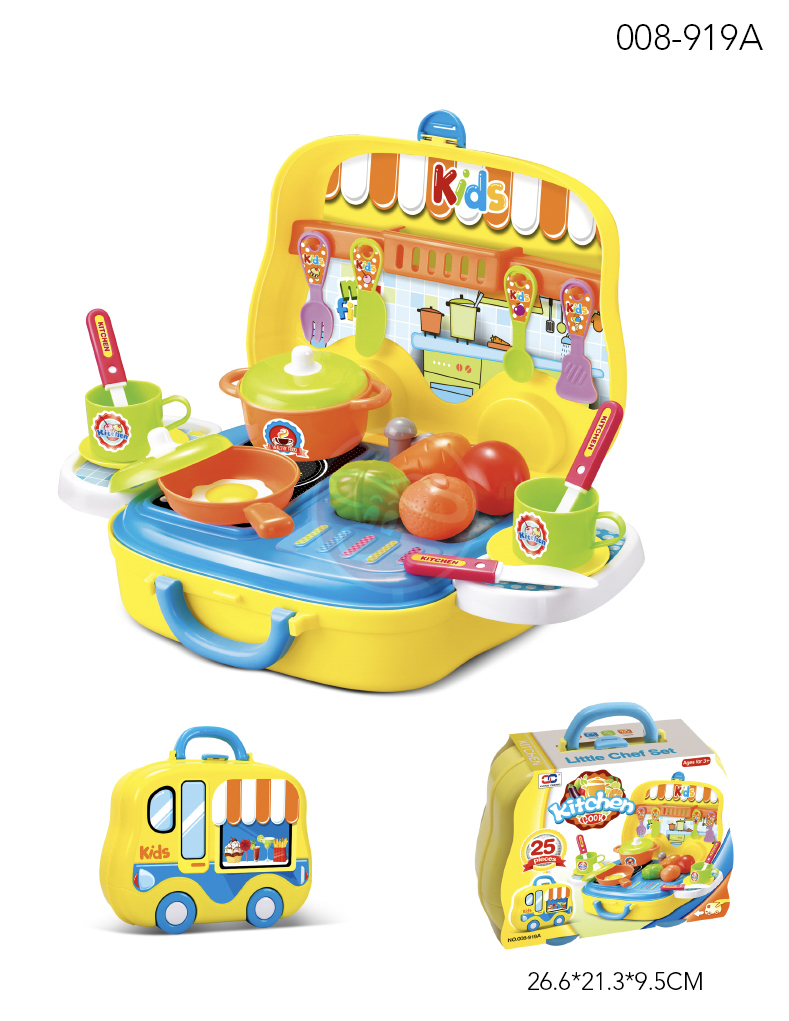 ● 多樣小配件,學習各種餐具 ● 配件可全部放進旅行箱,收納性高 ● 外箱為手提設計,走到哪玩到哪 ● 箱底設計四個滑輪,便於滑行 ● 體驗角色扮演,學習語言表達 ● 日常生活模擬,享受親子樂趣