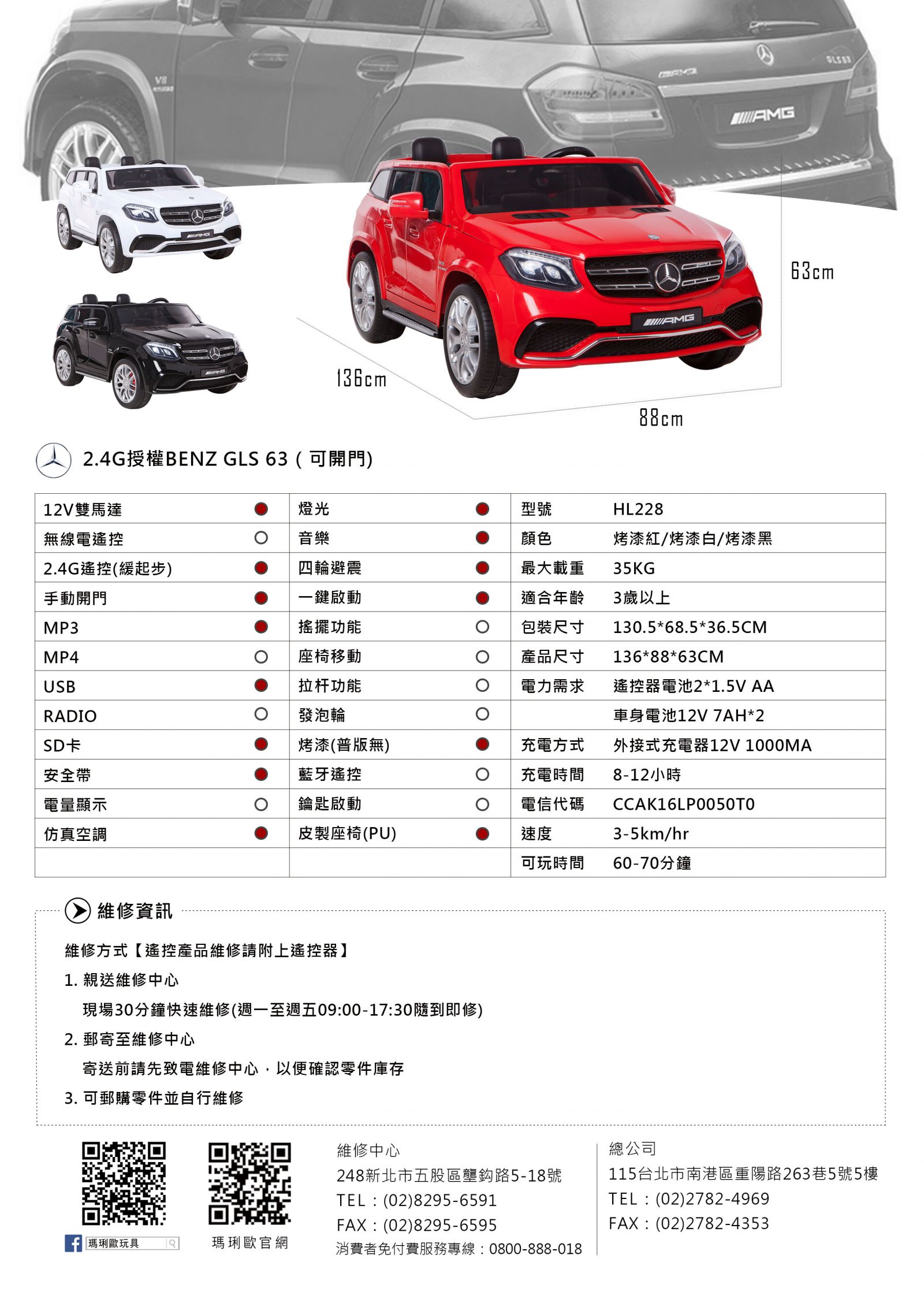 【型號HL228】BENZ GLS 63 LICENSED CAR 童車