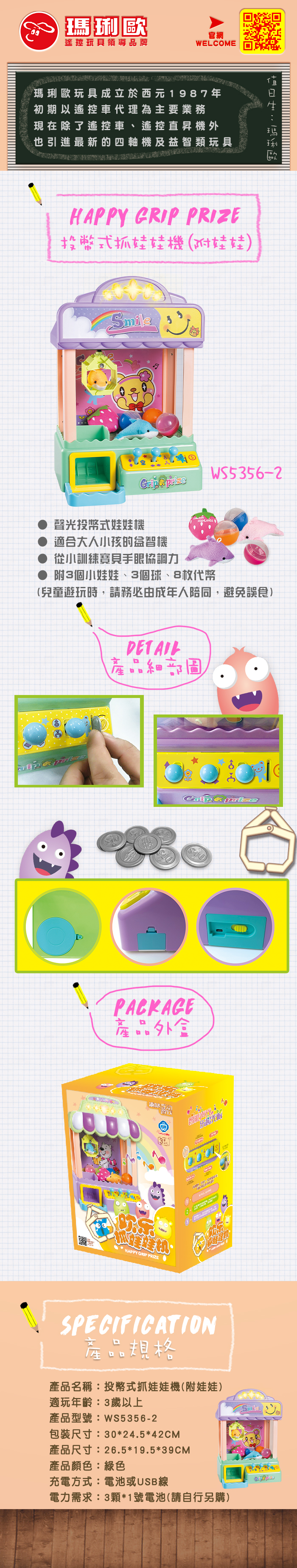 【型號WS5356-2】投幣式抓娃娃機(附娃娃)
