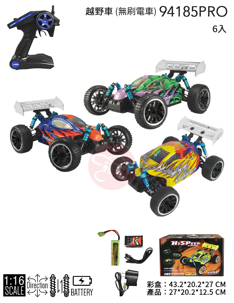 【型號94185PRO】1:16越野車(無刷版:無刷電調,無刷馬達,金屬避震器,全培林)