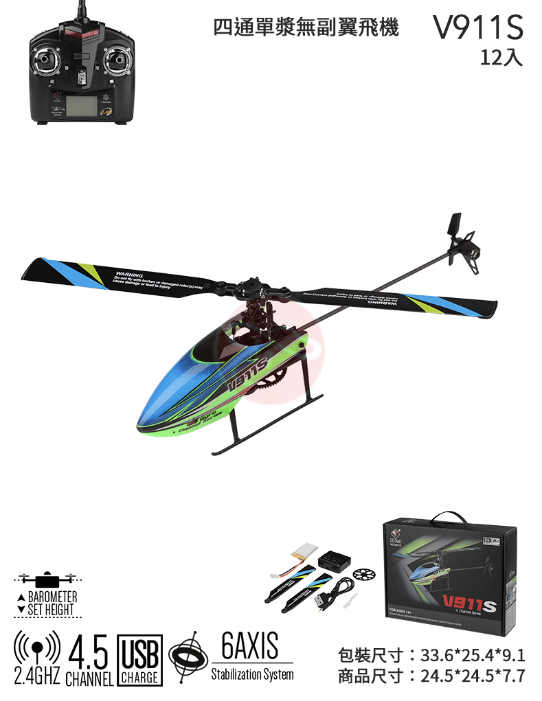 【型號V911S】2.4G四通單漿無副翼飛機