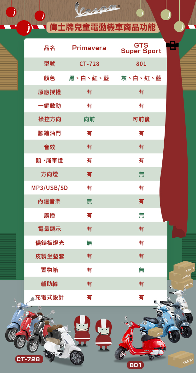 【型號801】獨家代理-Vespa GTS Super Sport 偉士牌兒童電動機車