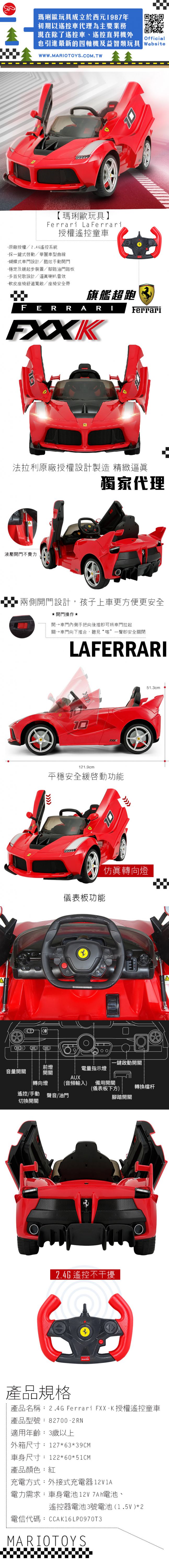 【型號82700-2RN】獨家代理-Ferrari FXX-K 授權遙控童車