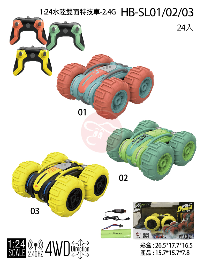 【型號HB-SL01/02/03】1:24水陸雙面特技車-2.4G