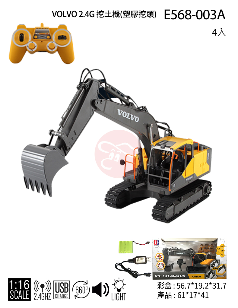 【型號E568-003A】VOLVO 2.4G 挖土機(塑膠挖頭)