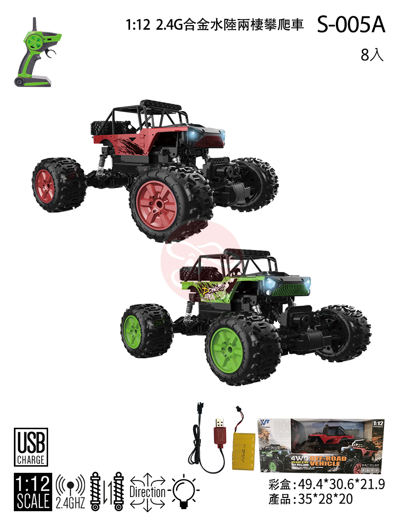 【型號S-005A】1:12 2.4G合金水陸兩棲攀爬車